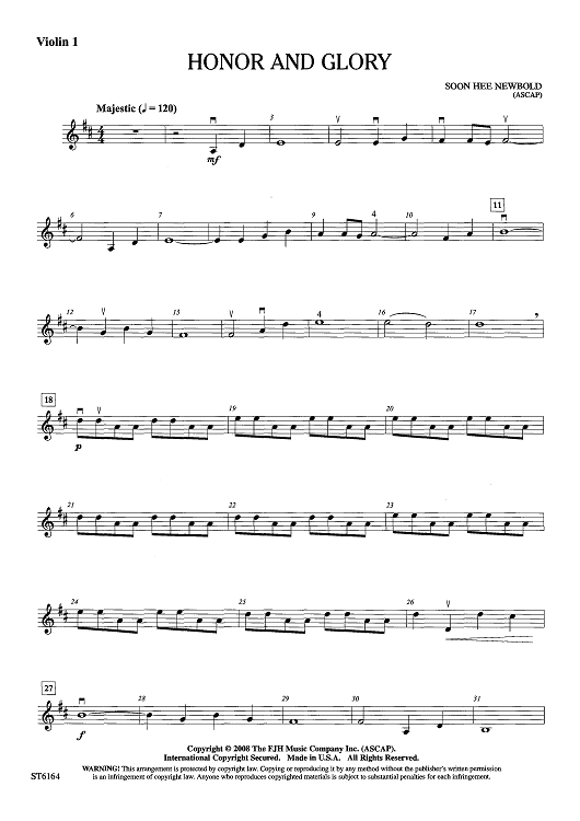 "Honor and Glory - Violin 1" Sheet Music by Soon Hee Newbold