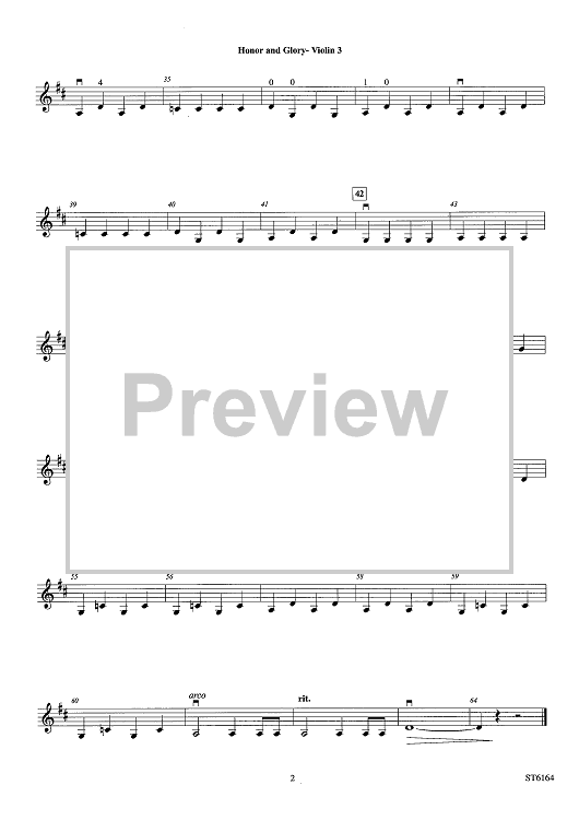 Digital Sheet Music for Honor and Glory - Violin 3 (Viola T.C.) by Soon Hee Newbold scored for String Orchestra; id:441677