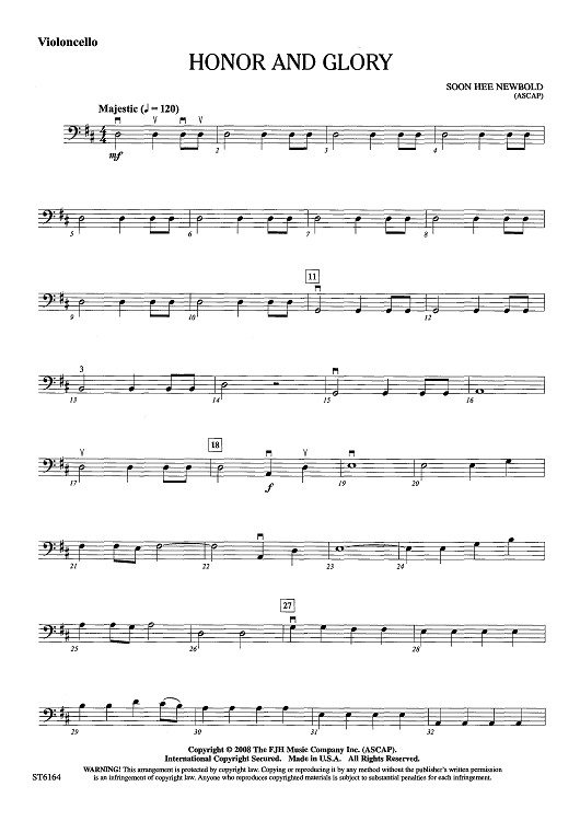 Digital Sheet Music for Honor and Glory - Violoncello by Soon Hee Newbold scored for String Orchestra; id:441679