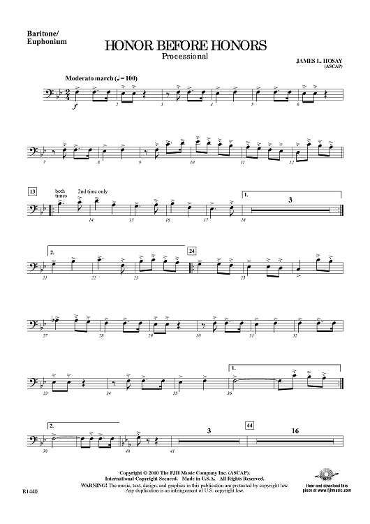 Digital Sheet Music for Honor Before Honors - Baritone/Euphonium by James L. Hosay scored for Young Band; id:415400