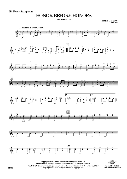 "Honor Before Honors - Bb Tenor Sax" Sheet Music by James L. Hosay