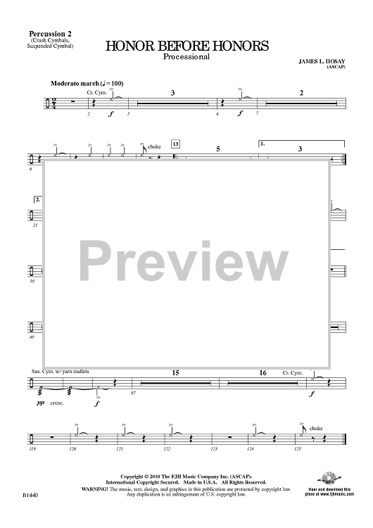 Digital Sheet Music for Honor Before Honors - Percussion 2 by James L. Hosay scored for Young Band; id:415406
