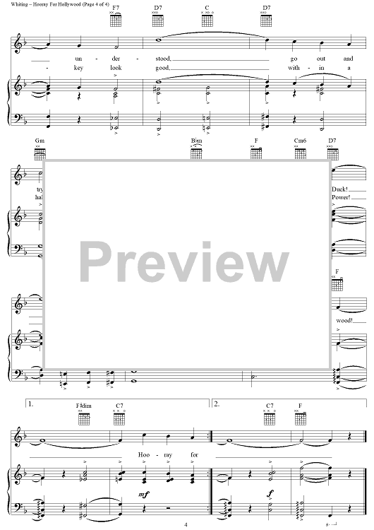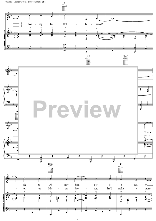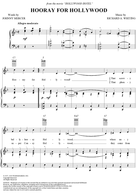 Digital Sheet Music for Hooray for Hollywood by Johnny Mercer, Richard A. Whiting scored for Piano/Vocal/Chords; id:120820
