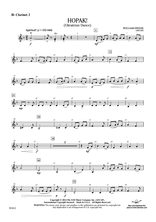 Digital Sheet Music for Hopak! - Bb Clarinet 2 by William Owens scored for Concert Band; id:447889