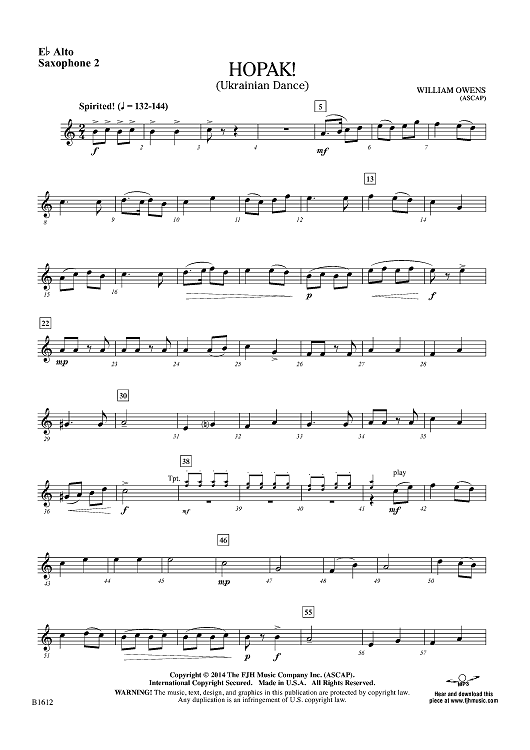Digital Sheet Music for Hopak! - Eb Alto Sax 2 by William Owens scored for Concert Band; id:447892