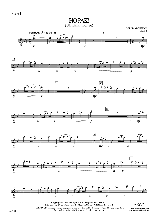 Digital Sheet Music for Hopak! - Flute 1 by William Owens scored for Concert Band; id:447884