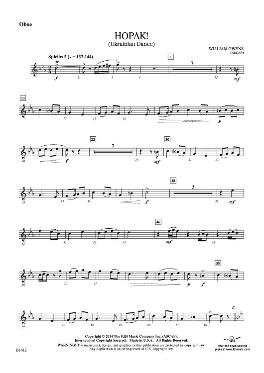 Digital Sheet Music for Hopak! - Oboe by William Owens scored for Concert Band; id:447886