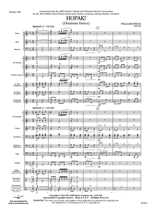 Digital Sheet Music for Hopak! - Score by William Owens scored for Concert Band; id:447882