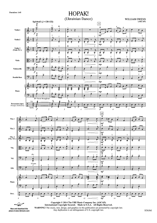 Digital Sheet Music for Hopak! - Score by William Owens scored for Orchestra; id:448312