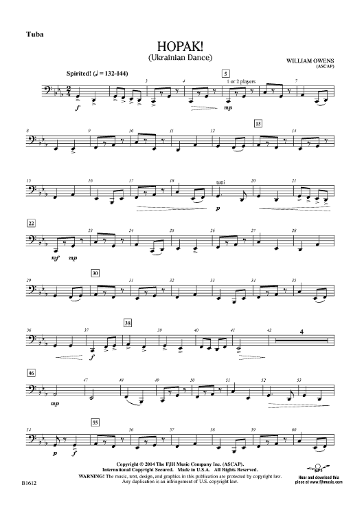 "Hopak! - Tuba" Sheet Music by William Owens