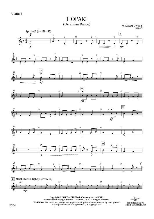 "Hopak! - Violin 2" Sheet Music by William Owens