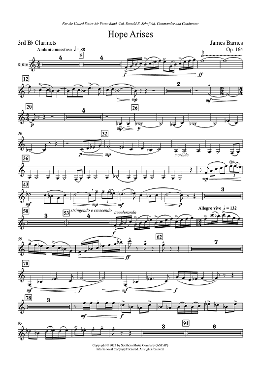 "Hope Arises - Bb Clarinet 3" Sheet Music by James Barnes