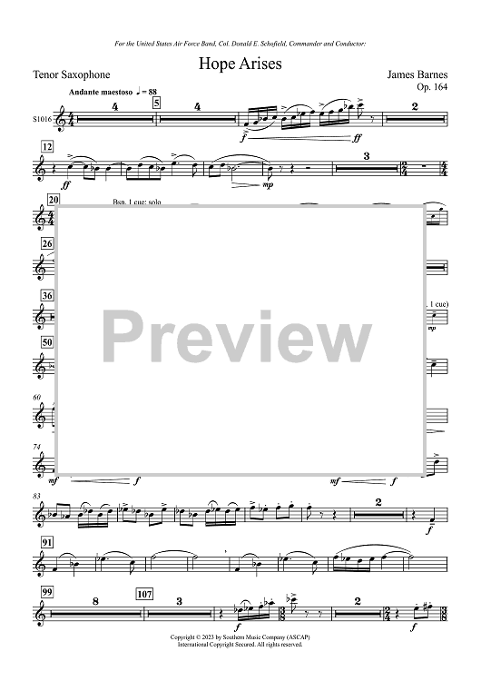 Digital Sheet Music for Hope Arises - Bb Tenor Sax by James Barnes scored for Concert Band; id:503400