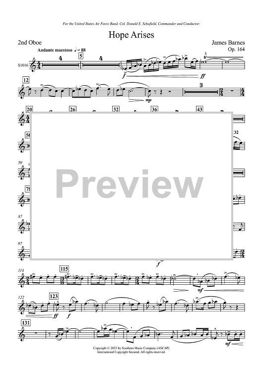 Digital Sheet Music for Hope Arises - Oboe 2 by James Barnes scored for Concert Band; id:503390