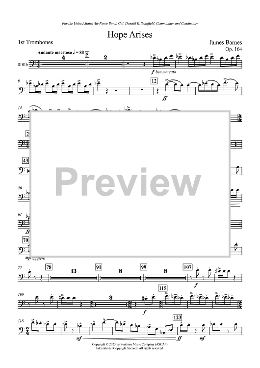 Digital Sheet Music for Hope Arises - Trombone 1 by James Barnes scored for Concert Band; id:503410