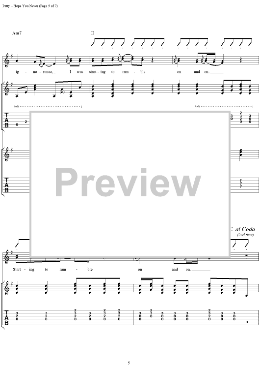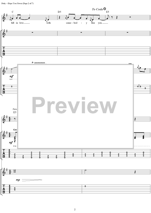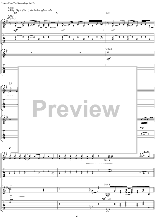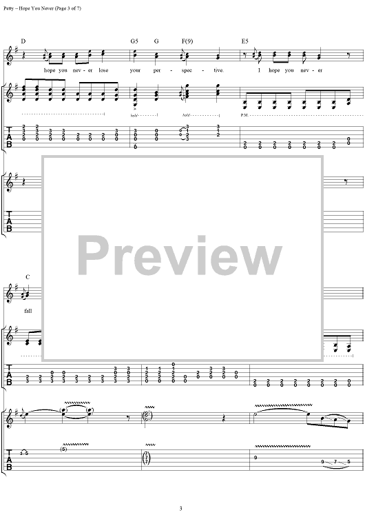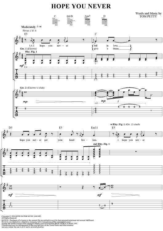 Digital Sheet Music for Hope You Never by Tom Petty scored for Guitar Tab/Vocal; id:112223