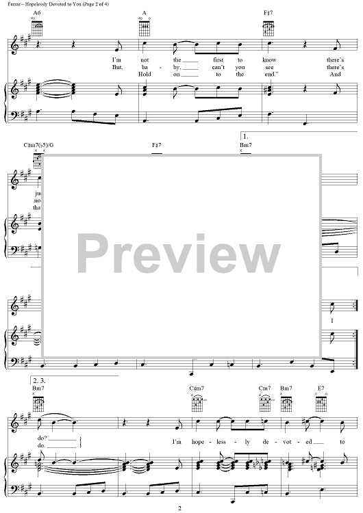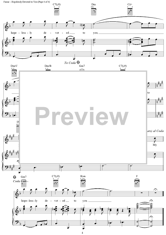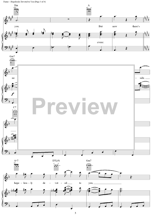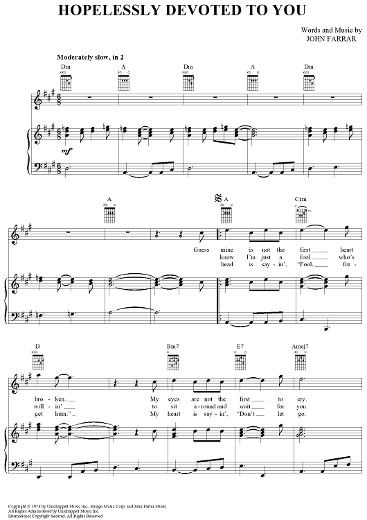 Digital Sheet Music for Hopelessly Devoted to You by Olivia Newton-John, John Farrar scored for Piano/Vocal/Chords; id:365234