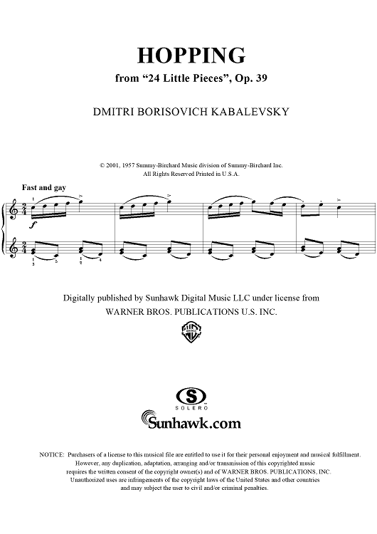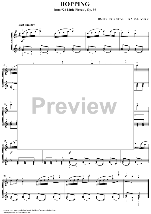 Digital Sheet Music for Hopping by Dmitri Kabalevsky scored for Piano Solo; id:287589