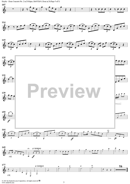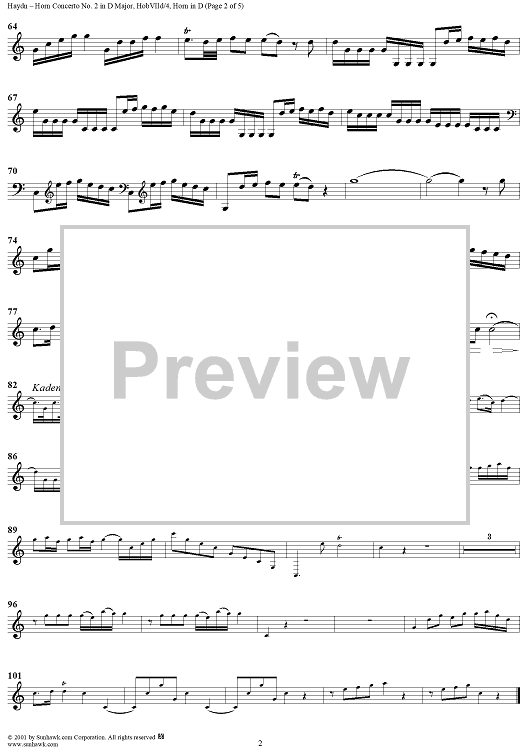 "Horn Concerto No. 2 - Horn" Sheet Music by Franz Joseph Haydn
