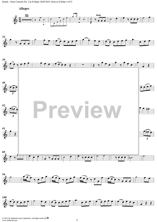 Digital Sheet Music for Horn Concerto No. 2 - Horn by Franz Joseph Haydn scored for French Horn/Piano; id:267205