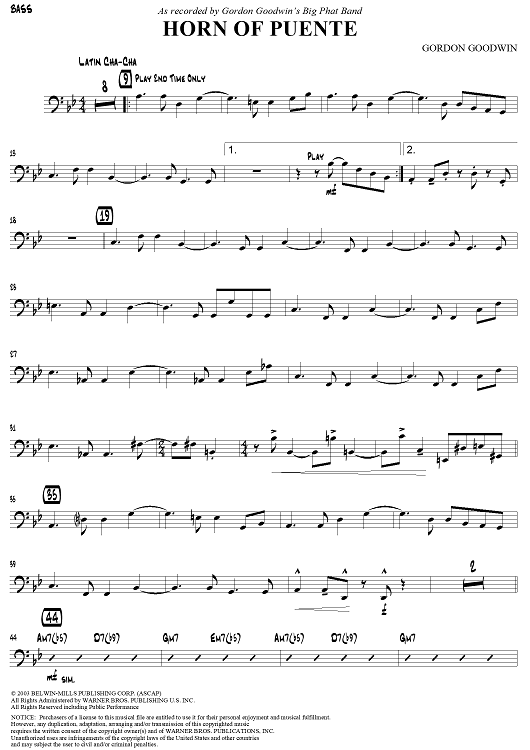 Digital Sheet Music for Horn of Puente - Bass by Gordon Goodwin, Gordon Goodwin's Big Phat Band scored for Jazz Ensemble; id:307385