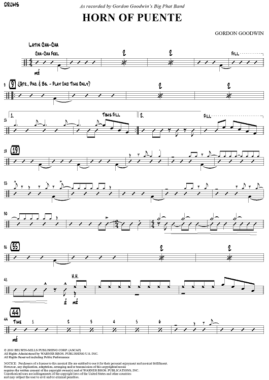 Digital Sheet Music for Horn of Puente - Drums by Gordon Goodwin, Gordon Goodwin's Big Phat Band scored for Jazz Ensemble; id:307386