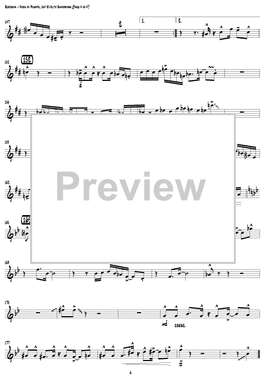 Digital Sheet Music for Horn of Puente - E-flat Alto Saxophone 1 by Gordon Goodwin, Gordon Goodwin's Big Phat Band scored for Jazz Ensemble; id:307370