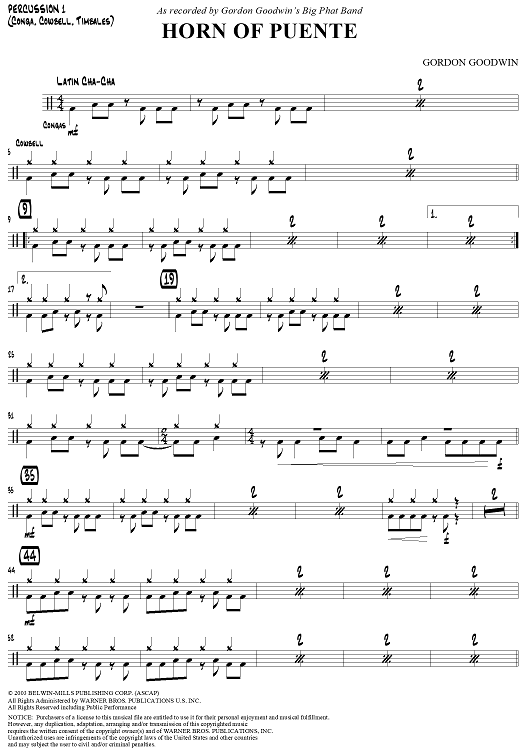 Digital Sheet Music for Horn of Puente - Percussion 1 by Gordon Goodwin, Gordon Goodwin's Big Phat Band scored for Jazz Ensemble; id:307387