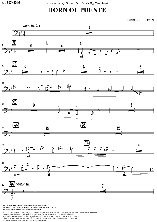 Digital Sheet Music for Horn of Puente - Trombone 4 by Gordon Goodwin, Gordon Goodwin's Big Phat Band scored for Jazz Ensemble; id:307382
