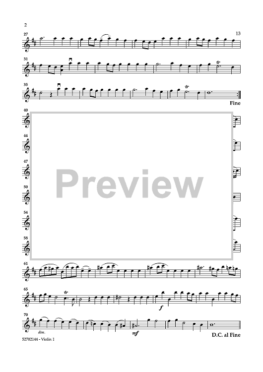 "Hornpipe from Water Music - Violin 1" Sheet Music by George Frideric Handel