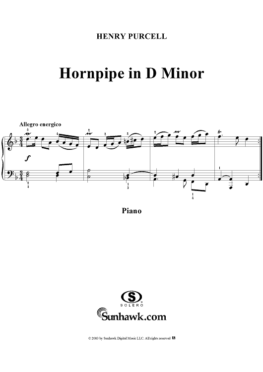Digital Sheet Music for Hornpipe in D Minor by Henry Purcell scored for Piano Solo; id:294834