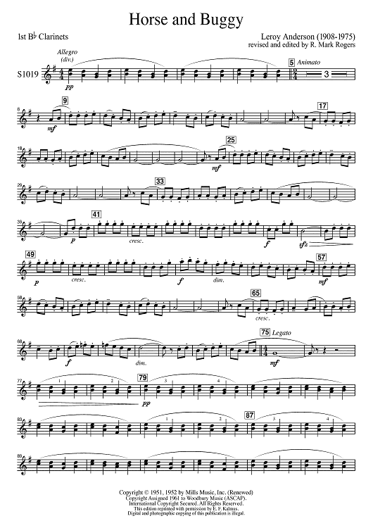Digital Sheet Music for Horse and Buggy for Band - Second Edition - Bb Clarinet 1 by Leroy Anderson scored for Concert Band; id:502242
