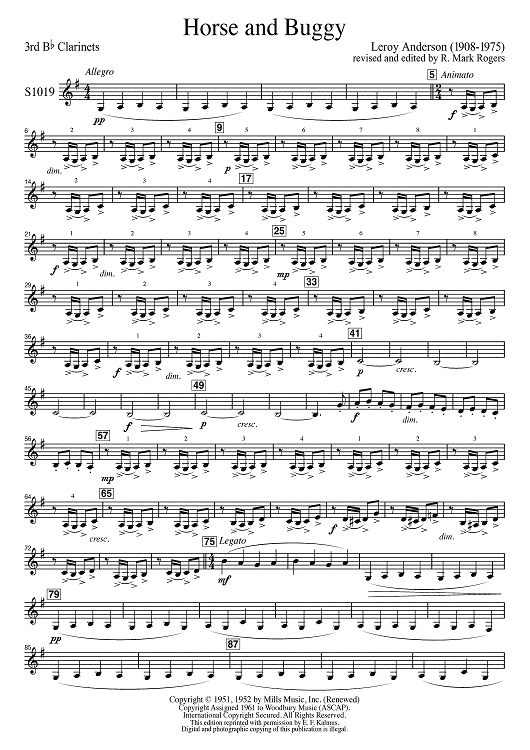 Digital Sheet Music for Horse and Buggy for Band - Second Edition - Bb Clarinet 3 by Leroy Anderson scored for Concert Band; id:502244
