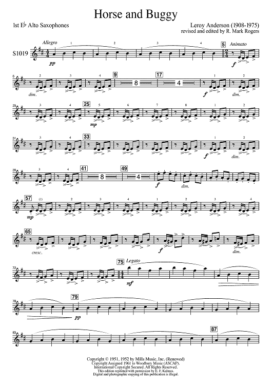 Digital Sheet Music for Horse and Buggy for Band - Second Edition - Eb Alto Sax 1 by Leroy Anderson scored for Concert Band; id:502250