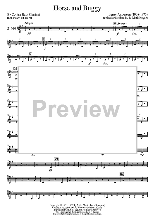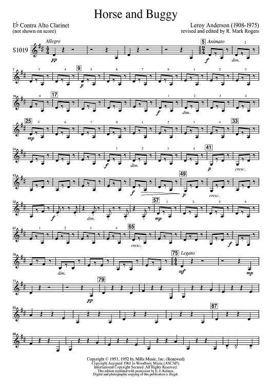 Digital Sheet Music for Horse and Buggy for Band - Second Edition - Eb Contra Alto Clarinet / Bb Contra Bass Clarinet by Leroy Anderson scored for Concert Band; id:502247
