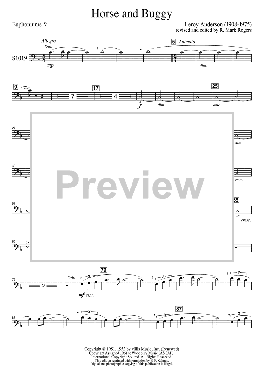 Digital Sheet Music for Horse and Buggy for Band - Second Edition - Euphoniums TC/BC by Leroy Anderson scored for Concert Band; id:502266