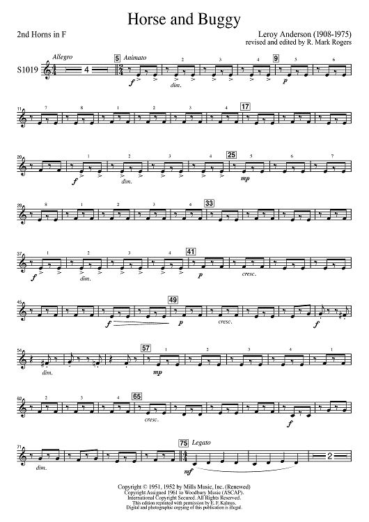 "Horse and Buggy for Band - Second Edition - F Horn 2" Sheet Music by Leroy Anderson
