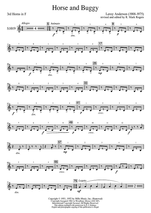 "Horse and Buggy for Band - Second Edition - F Horn 3" Sheet Music by Leroy Anderson