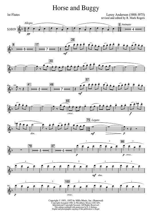 Digital Sheet Music for Horse and Buggy for Band - Second Edition - Flute 1 by Leroy Anderson scored for Concert Band; id:502237