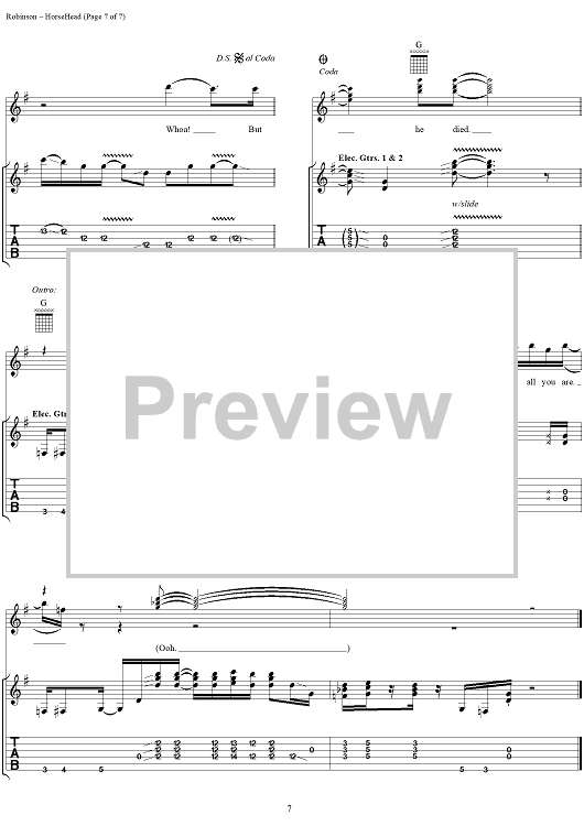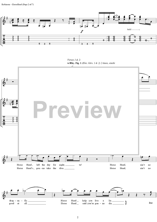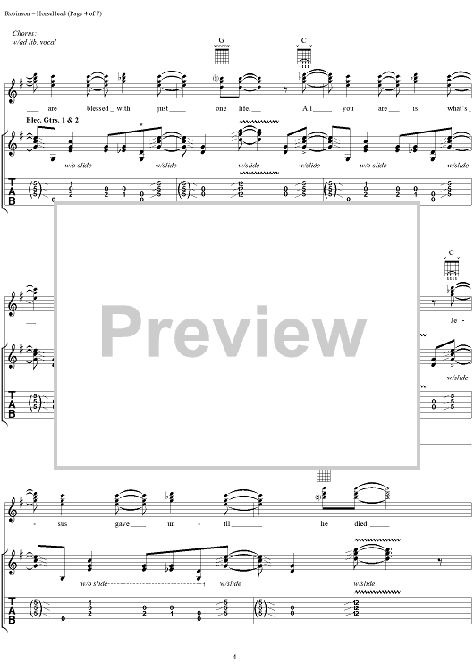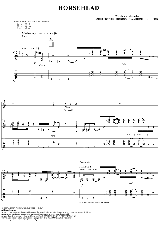 Digital Sheet Music for Horsehead by The Black Crowes, Chris Robinson, Rich Robinson scored for Guitar Tab/Vocal; id:240918
