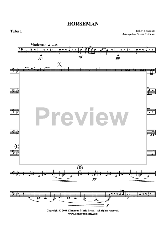 Digital Sheet Music for Horseman - Tuba 1 by Robert Schumann, Robert Wilkinson scored for Tuba Quartet; id:416610