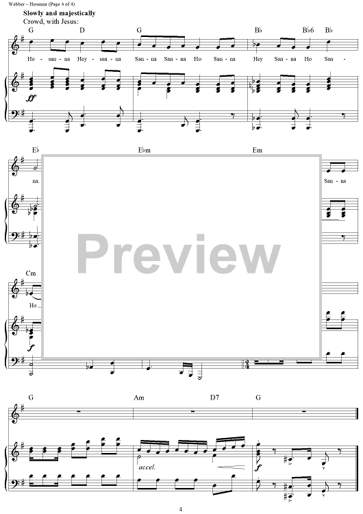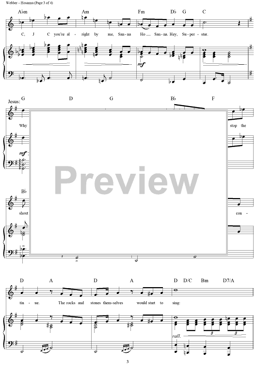 Digital Sheet Music for Hosanna by Andrew Lloyd Webber, Tim Rice scored for Piano/Vocal/Chords; id:296550