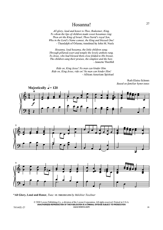 Digital Sheet Music for Hosanna! by Ruth Elaine Schram, Traditional scored for Piano Solo; id:434117