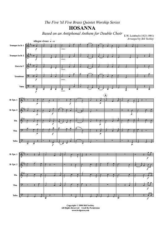 Digital Sheet Music for Hosanna - Score by Bill Yeckley, E. W. Leinbach scored for Brass Quintet; id:428137