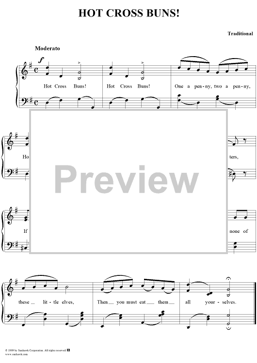 Digital Sheet Music for Hot Cross Buns by Traditional scored for Piano/Vocal; id:112049