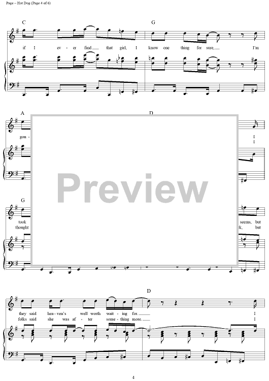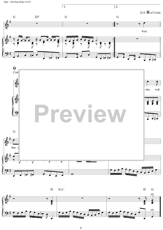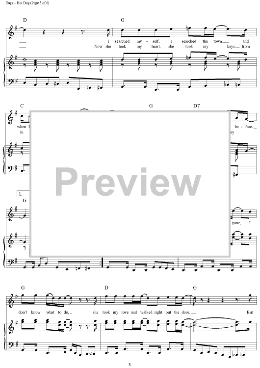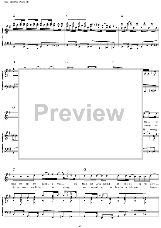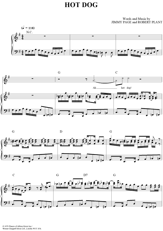 Digital Sheet Music for Hot Dog by Jimmy Page, Led Zeppelin, Robert Plant scored for Piano/Vocal/Chords; id:119802