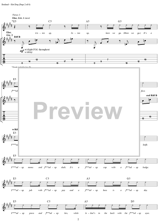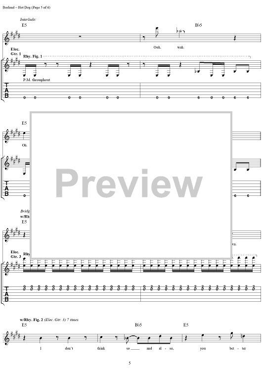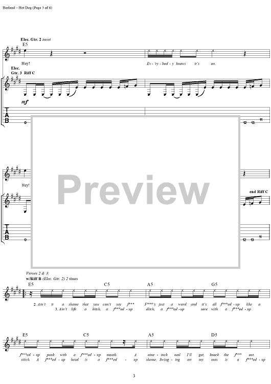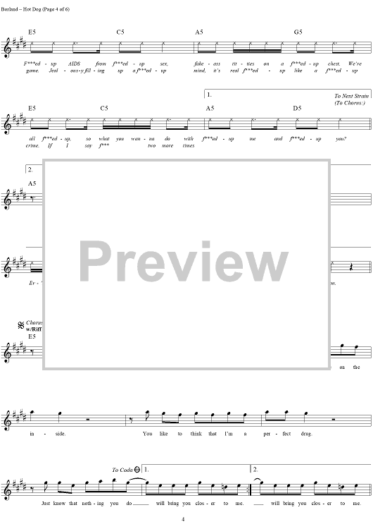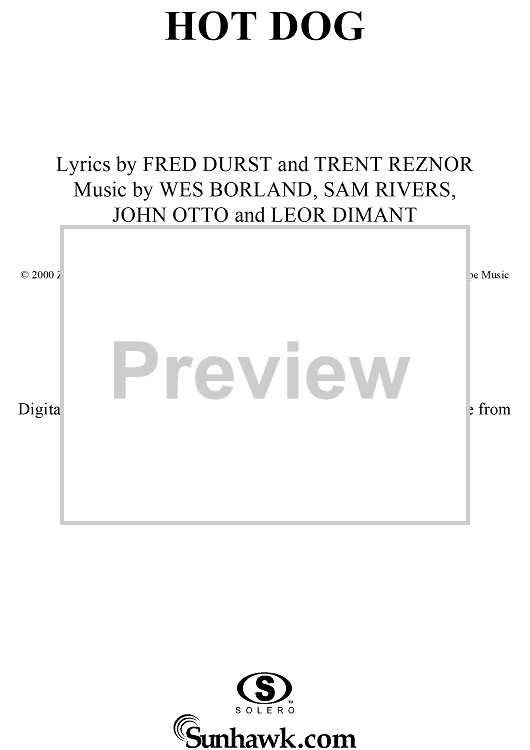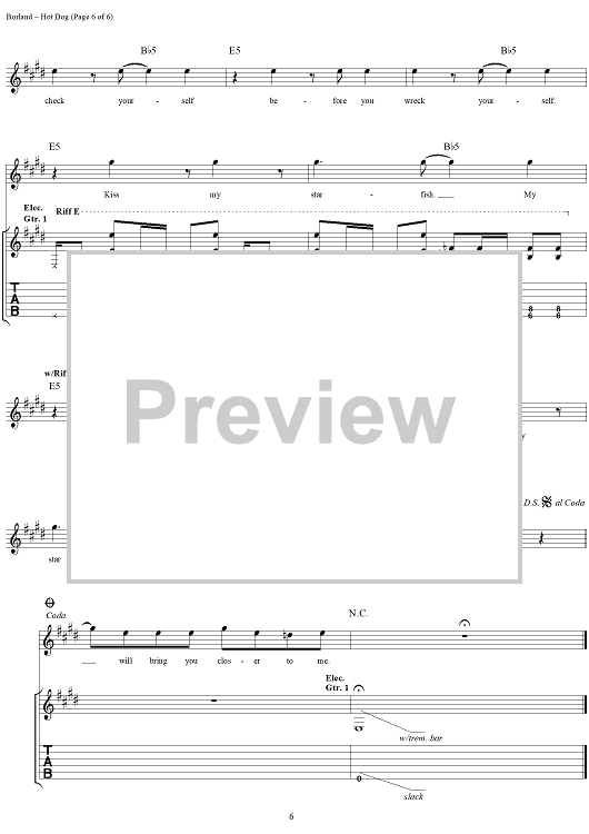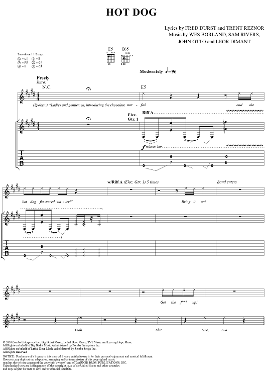 Digital Sheet Music for Hot Dog by Wes Borland, Sam Rivers, John Otto, Leor Dimant, Fred Durst, Limp Bizkit, Trent Reznor scored for Guitar Tab/Vocal; id:287742