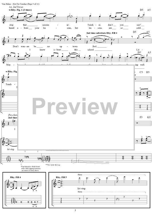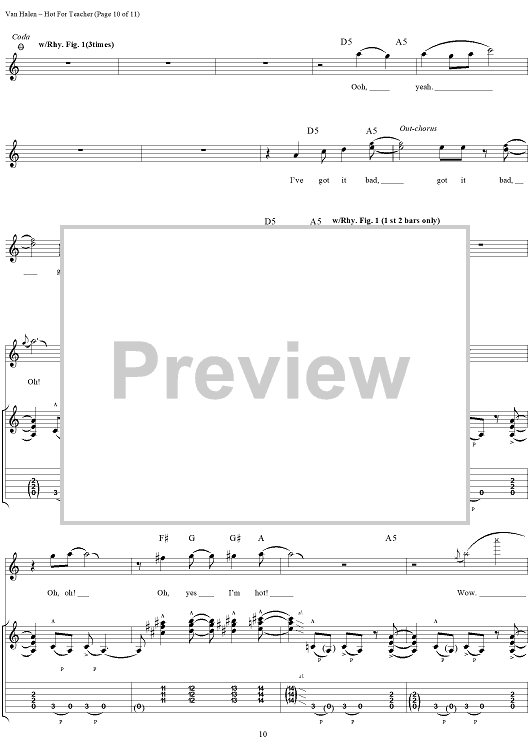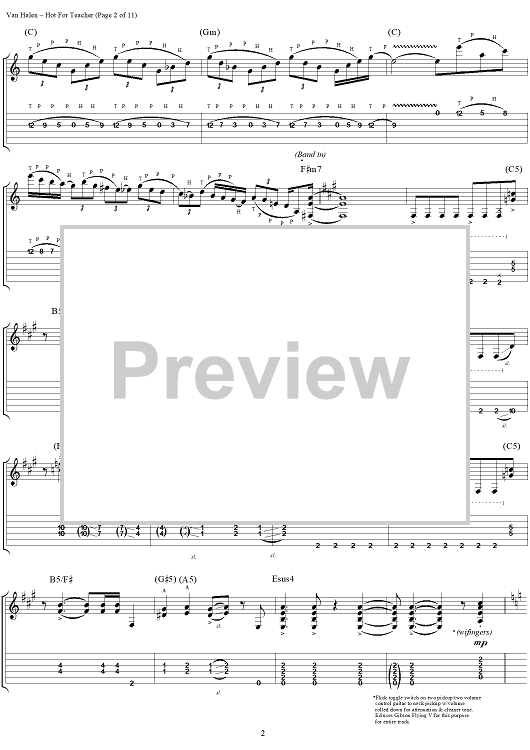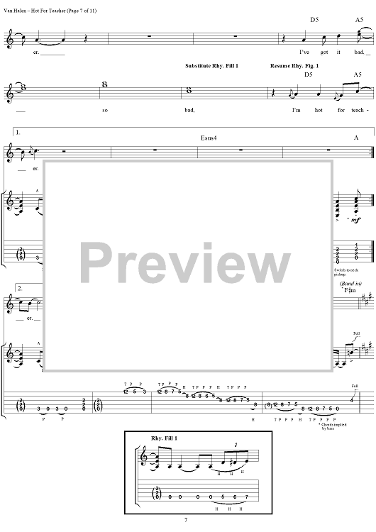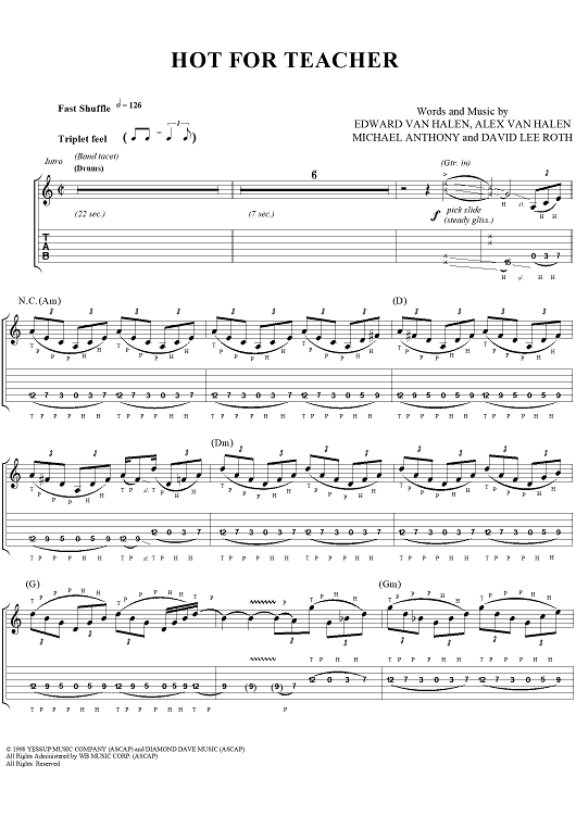 "Hot For Teacher" Sheet Music by Van Halen