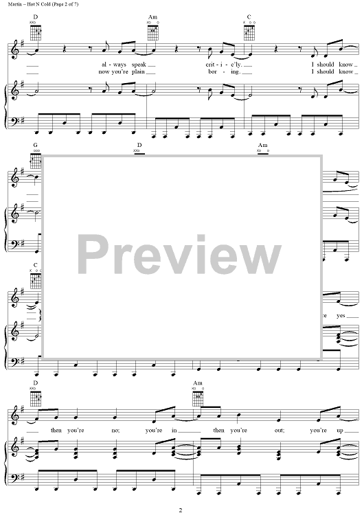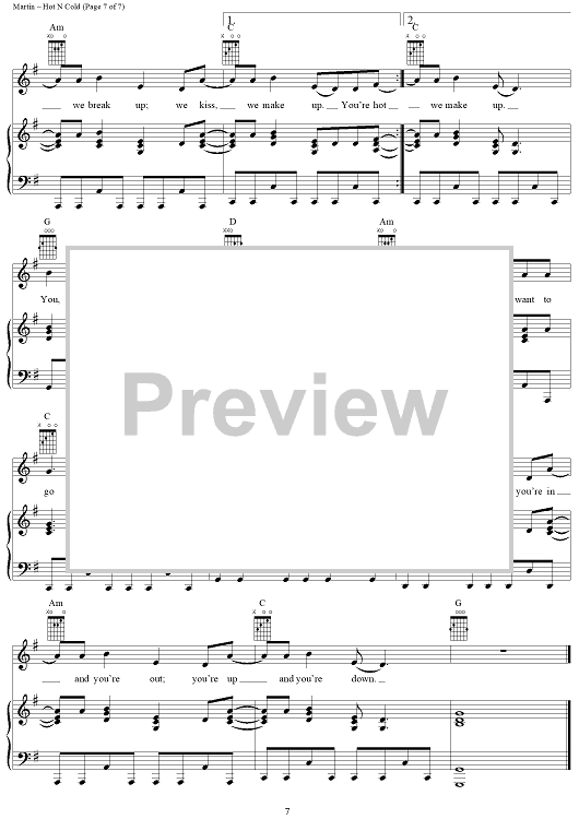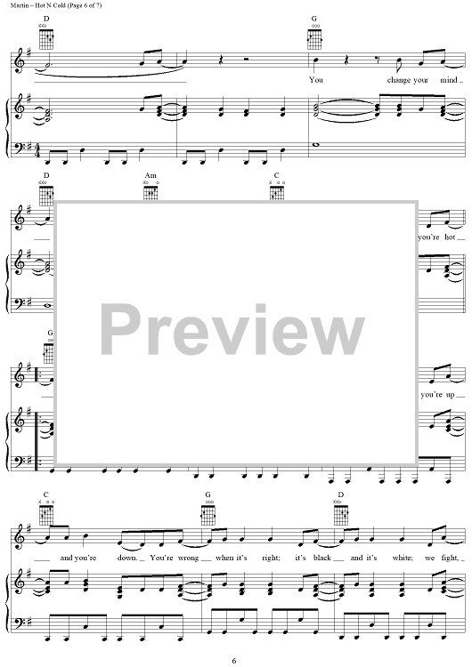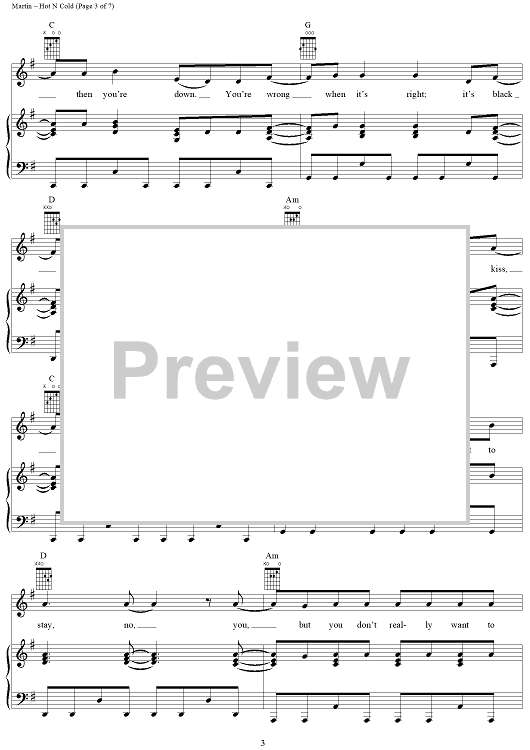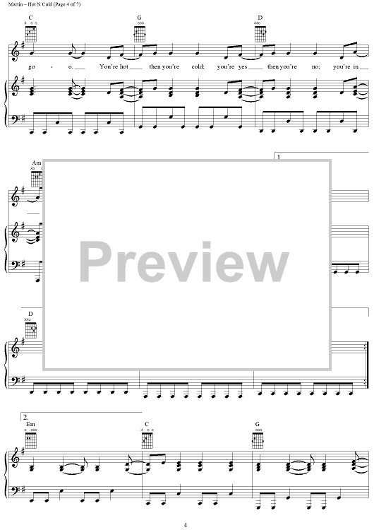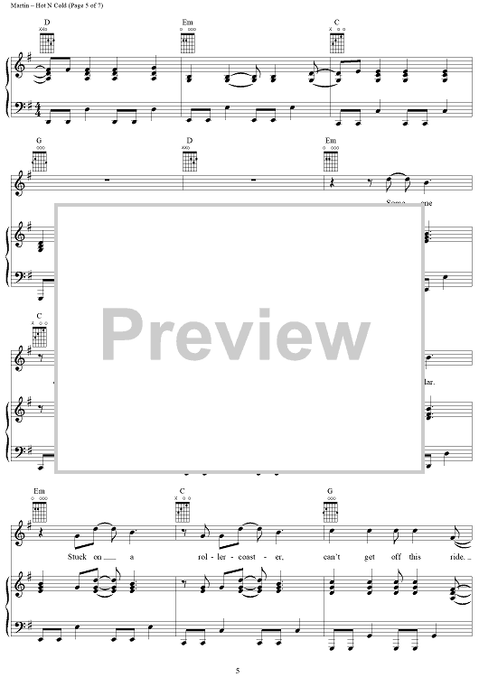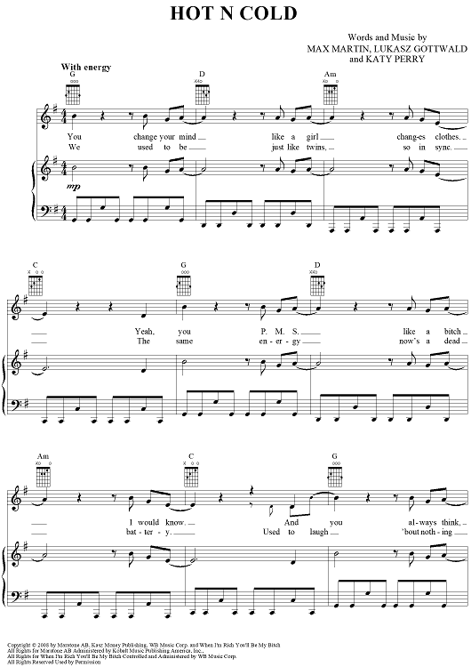 Digital Sheet Music for Hot N Cold by Max Martin, Katy Perry scored for Piano/Vocal/Chords; id:406689