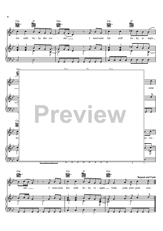 Digital Sheet Music for Hot Stuff by Donna Summer, Keith Forsey, Harold Faltermeyer, Pete Bellotte scored for Piano/Vocal/Chords; id:395037